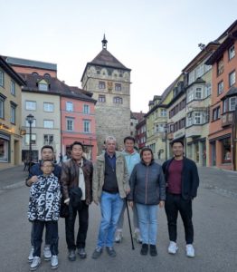 Das Wetter hielt, zumindest meistens, nur ab und zu ein paar Tropfen, aber nach kurzer Zeit konnten die Regenschirme wieder zugeklappt werden. Steil bergauf über schmale Stäffele gings zur Grabkapelle. Weil die verschiedenen Stellen unterwegs immer wieder zum Blick übers Neckartal und Stuttgart einluden, wurde lebhaft diskutiert, was man denn gerade sehen könne. Unter anderem das Stuttgarter Stadion, in dem gerade der VFB gegen Hoffenheim spielte, was man auch hören konnte, denn der Wind trug den Stadionlärm immer wieder in Wellen auf den Berg.